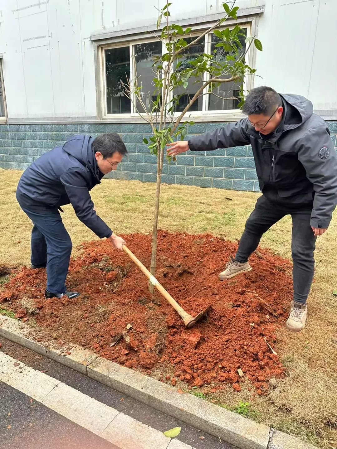 植樹現(xiàn)場,大家干勁十足,揮鍬鏟土、扶苗填坑、培土壓實、提水澆灌.....分工明確、配合默契,現(xiàn)場一片熱火朝天的景象,大家盡情享受著朝氣蓬勃的春意,用自己的雙手和汗水為公司注入新的生機(jī)與活力。