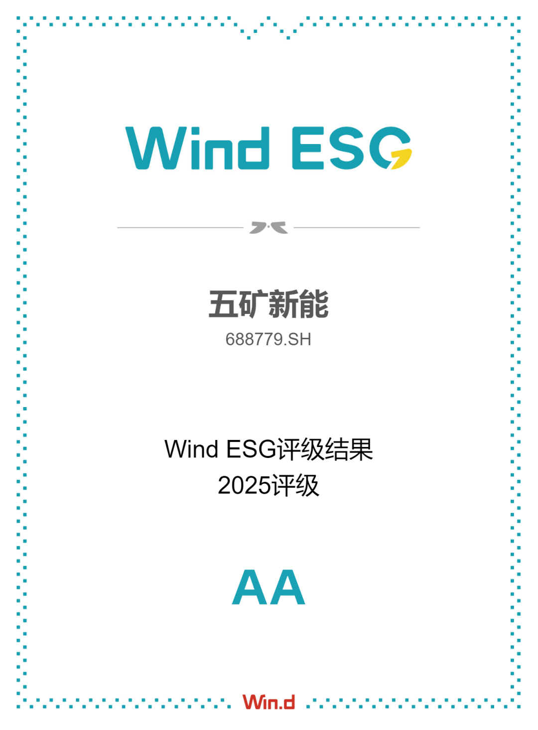 近日,五礦新能源材料(湖南)股份有限公司(證券代碼:688779.SH)在2024年度萬(wàn)得(Wind)ESG評(píng)級(jí)中實(shí)現(xiàn)顯著提升,由BBB級(jí)躍升至AA級(jí),成功躋身國(guó)內(nèi)同行業(yè)ESG評(píng)級(jí)最高梯隊(duì)。此次評(píng)級(jí)提升充分彰顯了公司在環(huán)境責(zé)任(E)、社會(huì)責(zé)任(S)及公司治理(G)三大維度的卓越表現(xiàn),標(biāo)志著公司在可持續(xù)發(fā)展領(lǐng)域的工作取得較好成果。